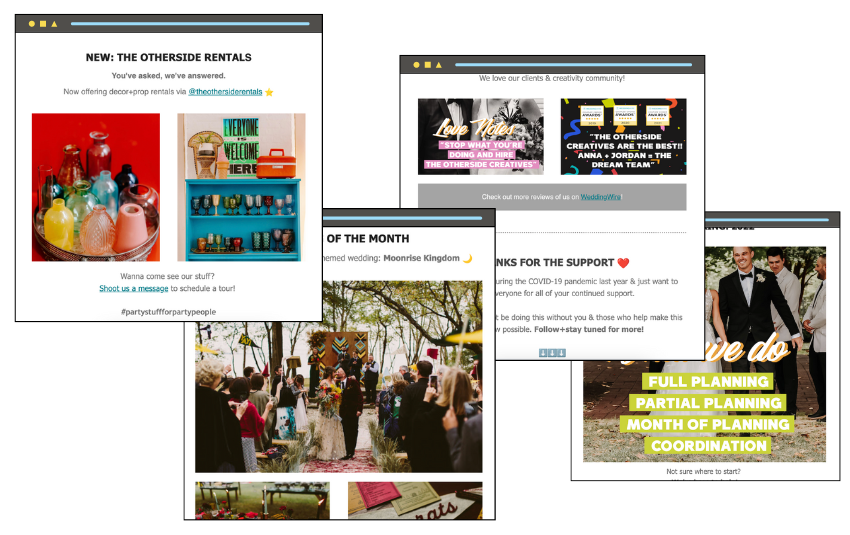 Newsletters, podcasts, social media, internal guides, e-commerce, blogs/SEO, scripts, etc.